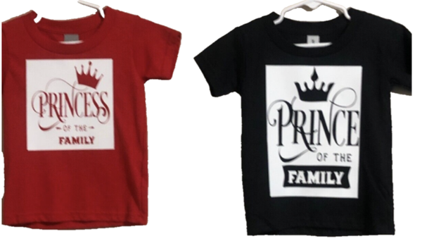 Kids Matching T Shirts Princess & Prince Of The Family All Colors All Sizes (2T -3XL) Open For Customization To Your Likings!